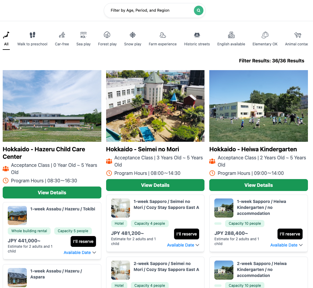 I wanted to bring the family to Hokkaido, Hazeru Child Care Center, because it was well-featured on the news and social sites. However, when I tried to book it in late 2024, there was a long waitlist, which continued until April 2026.